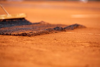 Na iedere gespeelde set graag eventueel ontstane schade met de voet herstellen en vervolgens de baan slepen.